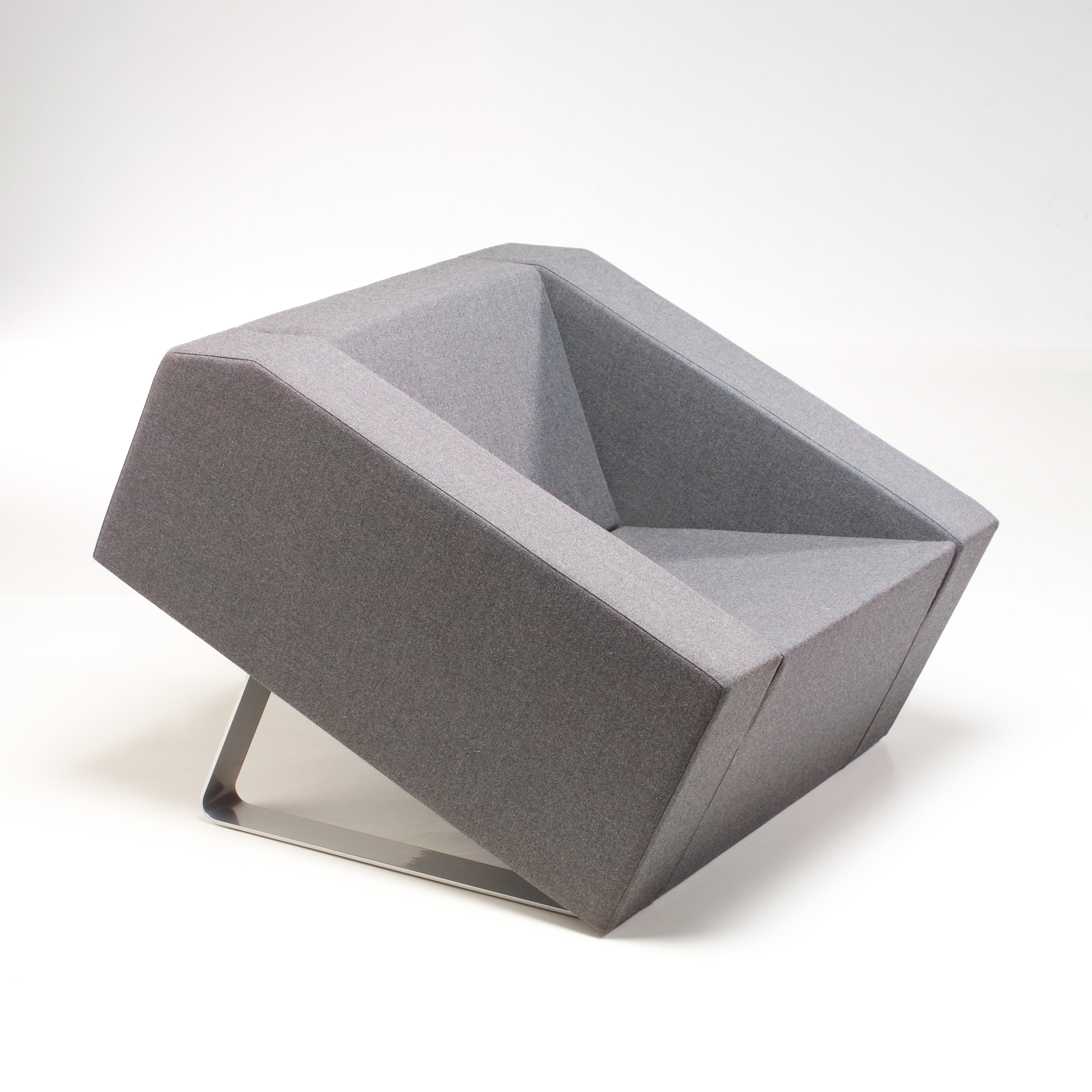 Finish: Upholstered body, steel base.